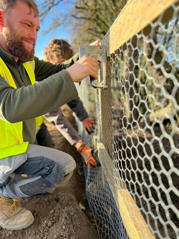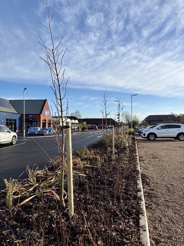 As Pennells Garden Centre, Sleaford underwent its retail expansion, we were responsible for the full soft landscaping package, transforming the functional outdoor area into an inviting retail destination. We installed high-quality ornamental shrubs and specimen trees across the new car park and entrance areas, providing year-round colour and texture, creating an immediate first impression for visitors. To protect these new ornamental beds during their vulnerable first growing seasons, we constructed bespoke timber fencing integrated with rabbit-proof netting. Due to the poor weather conditions over the winter, we have had to postpone site activity, so we will be revisiting the site in the following months to plant the remaining shrubs and native hedgerows to complete their vision.